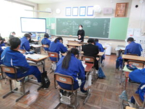 聞き取った英文をもとに、ピクチャーカードの順番を確認しています。
