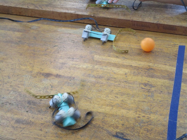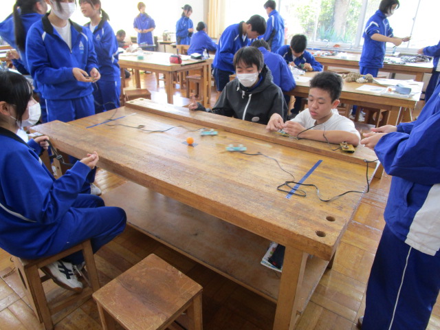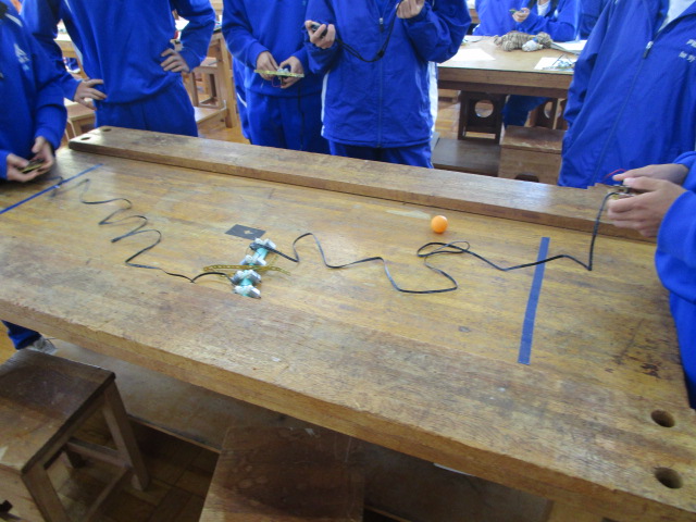 いざ、勝負! ~3年技術~ 2025年11月12日 最終更新日時 : 2025年11月12日 kumagaya_edit 一人一人が作成したモーターカーを使って、サッカーの対戦をしています。コントローラーの指令によって、上手に車をコントロールしてゴールを目指します。修理や改修を繰り返しながら、よりよいモーターカーに仕上げています。
