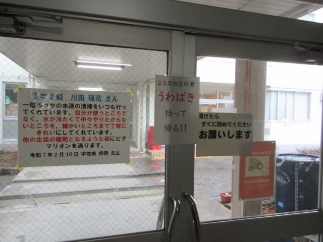 うわばき持ち帰り 2026年2月25日 最終更新日時 : 2026年2月25日 kumagaya_edit 明日の入試にはうわばきを忘れないようにしましょう。試験の次の日に中学校に持って帰ってくるのを忘れないように!