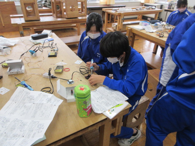 お目覚めブザー(2年) 2025年12月3日 最終更新日時 : 2025年12月3日 kumagaya_edit ハンダ付けで電子回路を作っています。今回はスイッチを入れるとスピーカーから音がでます。指を近づけると音が変わります。