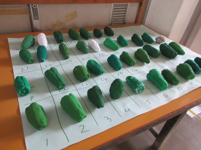 すべて粘土細工(1年) 2025年10月21日 最終更新日時 : 2025年10月21日 kumagaya_edit 美術室前にはピーマンの粘土細工が・・・前期にはジャガイモを作成しました。本物と見間違う作品がたくさんあります。