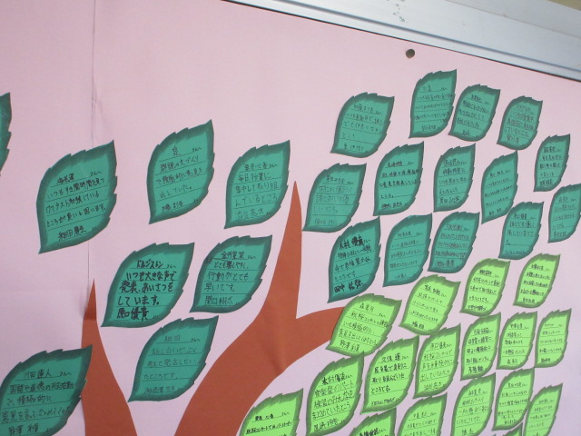 ならの木完成(1年) 2026年2月19日 最終更新日時 : 2026年2月19日 kumagaya_edit クラスメイトの良いところを長期休み前に掲示しています。全3回、たくさんの良いところが見つかりました。1年かけて立派なならの木が完成しました。
