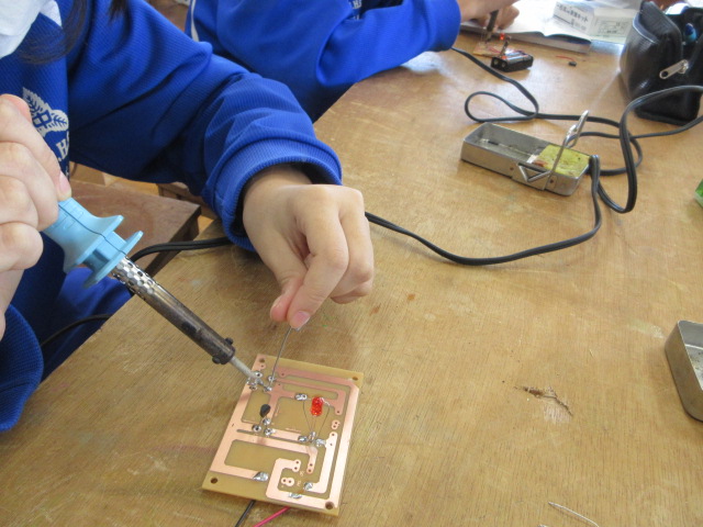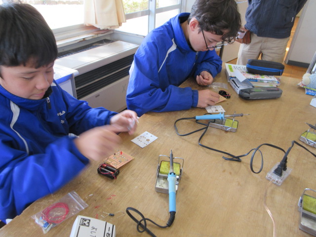 はんだ付け(2年) 2025年11月21日 最終更新日時 : 2025年11月21日 kumagaya_edit 自動点滅灯の回路に慎重にはんだ付けをしています。見えづらいですが、けむりが上がっています。