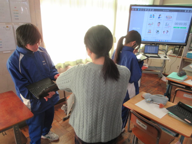 インタビュー(2年) 2026年1月9日 最終更新日時 : 2026年1月9日 kumagaya_edit タブレットを片手に、英語でインタビューをしています。質問する方も答える方も安心して話すことができます。