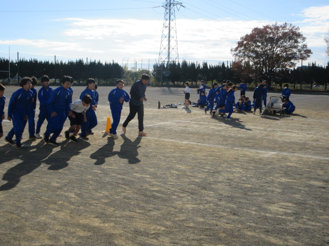 脈拍100を越えることを目標に校庭を3週走ります。強度強めです。