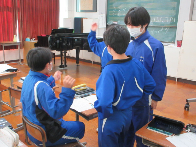 クラッピングラプソディ(3年) 2026年1月9日 最終更新日時 : 2026年1月9日 kumagaya_edit 手拍子だけで音楽を作ります。今日はリズムをとる練習です。難しそうですが楽しんで取り組んでいます。