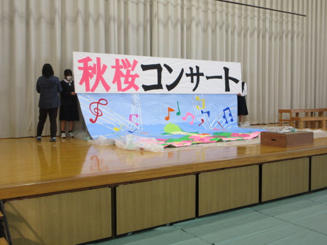 実行委員、筝曲部、美術部が秋桜コンサートの準備を着々と進めています。