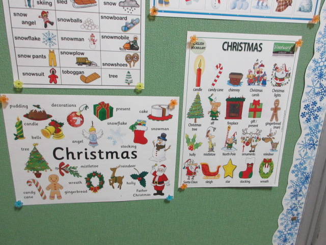 コーナー充実 2025年12月8日 最終更新日時 : 2025年12月7日 kumagaya_edit 2人のALTの先生が引き継ぎながらコーナーをどんどん充実させてくれています。クリスマスに関わる掲示物が増えました。