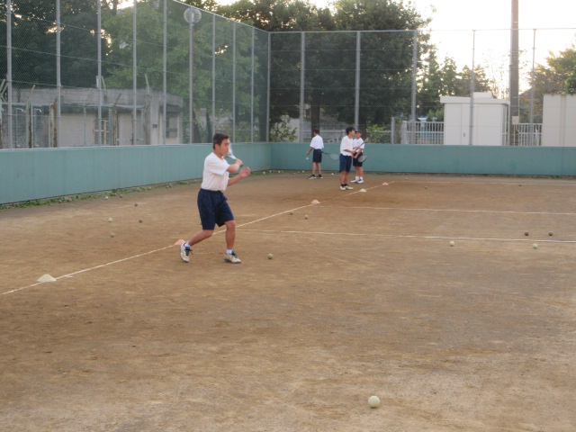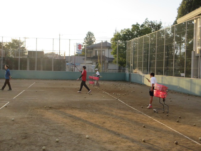 打ち込みの練習をしています。地面には大量のボールが落ちています。