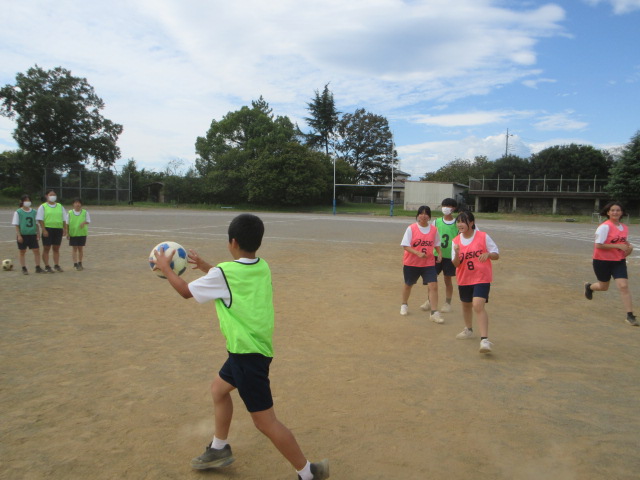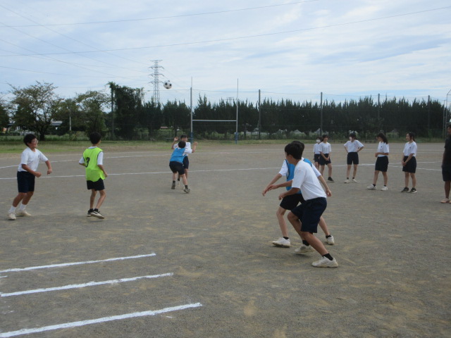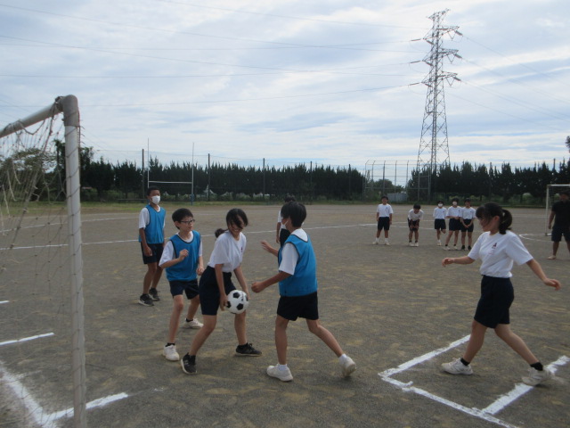 サッカーの授業ですが、今はパスコースを見つけるために、