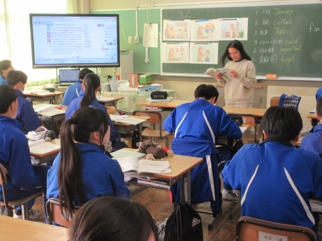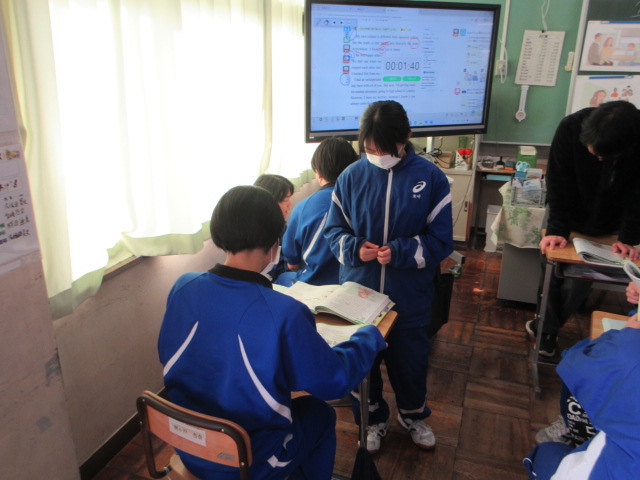 ALTの先生と英文を読んで発音を確認。その後はペアでの読みあいです。