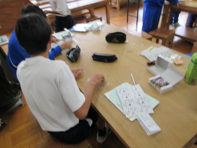実験キット(2年) 2025年10月22日 最終更新日時 : 2025年10月22日 kumagaya_edit 紙にたくさん穴をあけています。この穴に対応するようにハンダ付けをすると、様々な機能が発揮されるようです。どんなことができるのか楽しみです。