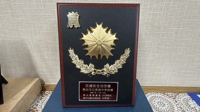 交通功労団体表彰 2025年11月18日 最終更新日時 : 2025年11月18日 kumagaya_edit 交通功労団体表彰をいただきました。昨年度から全員自転車通学可となっています。改めてルールを守って安全運転で登下校することを徹底していきましょう。