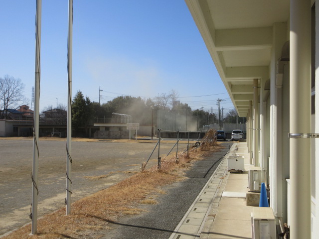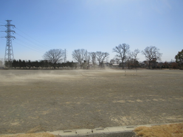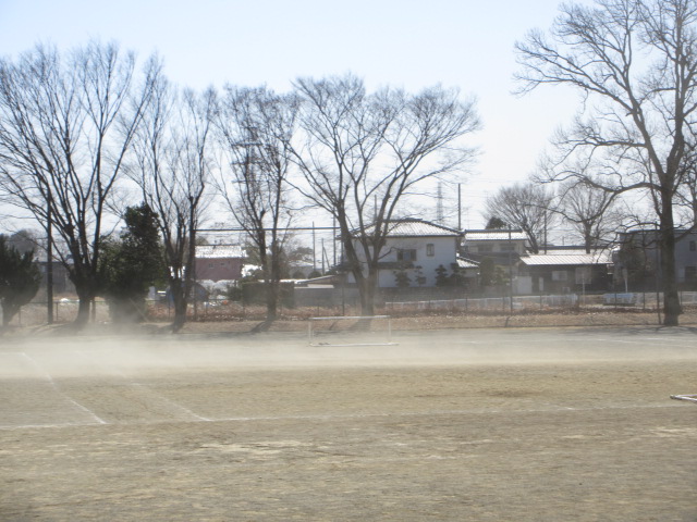校庭、テニスコートと至る所で、砂嵐が吹き荒れています。