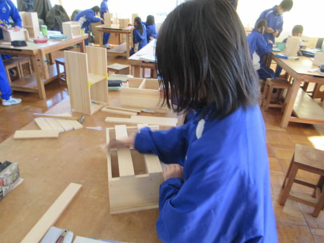 やすりで磨いたり、桐で穴をあけたり、ニスを塗ったりと