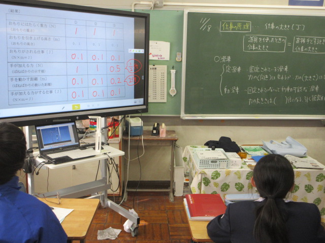 仕事の原理(3年) 2025年11月18日 最終更新日時 : 2025年11月18日 kumagaya_edit 動滑車を使うと、定滑車に比べて引く力は半分になります。その代わり引く距離は2倍になります。