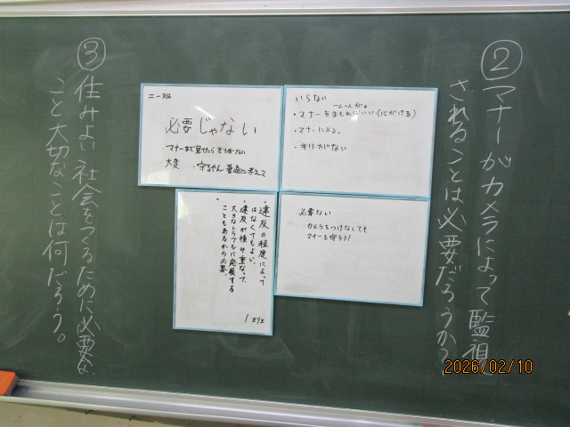 防犯カメラの設置を通して、住みよい社会とはどのようなものかについて話し合っています。