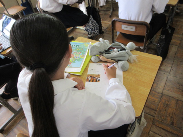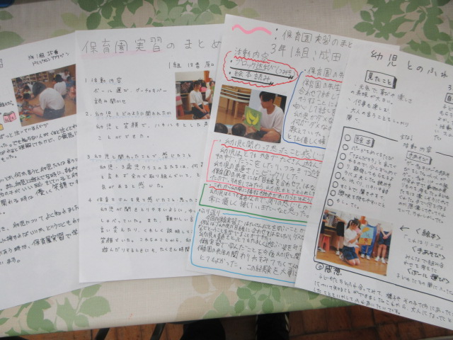 保育園での体験をレポートにまとめています。まとめるのがとても上手です。