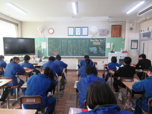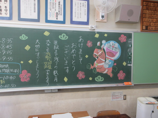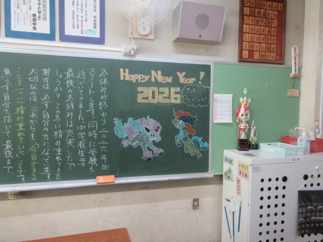 元気に登校 2026年1月8日 最終更新日時 : 2026年1月8日 kumagaya_edit 朝読書からスタートです。元気な姿が見られてうれしいです。担任の先生の黒板メッセージ&アートに熱さを感じます。