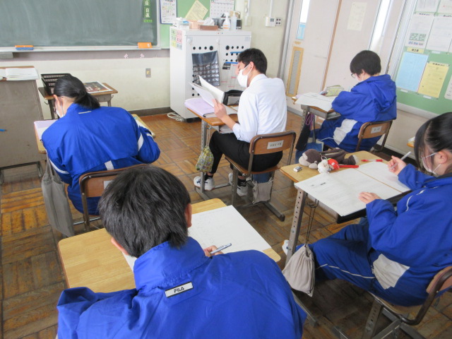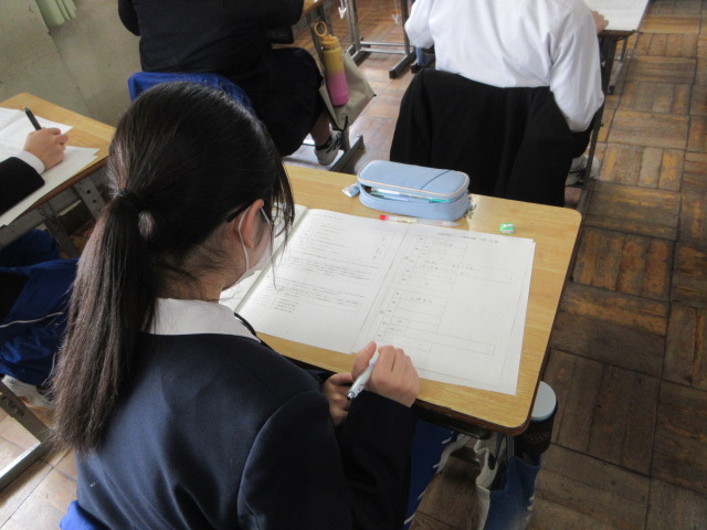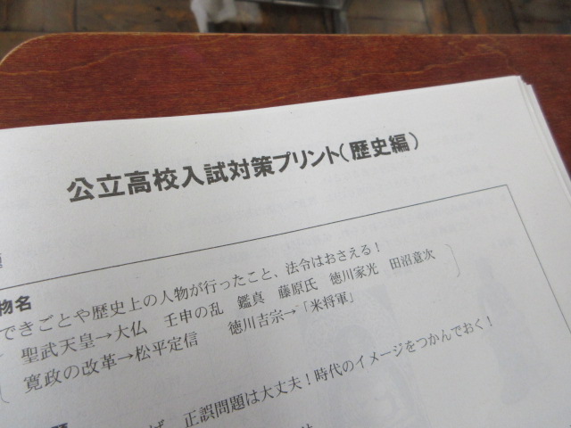 社会科では、入試問題そっくりに作られたプリントに取り組んでいます。