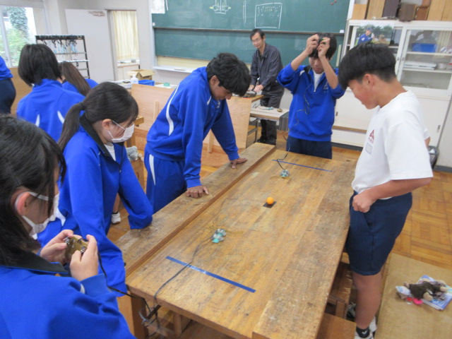 公式戦(3年) 2025年10月22日 最終更新日時 : 2025年10月22日 kumagaya_edit 完成したラジコンで1対1の試合をしています。卓球のボールを相手陣地のラインを越えれば勝利となります。試合後には微調整を行っています。