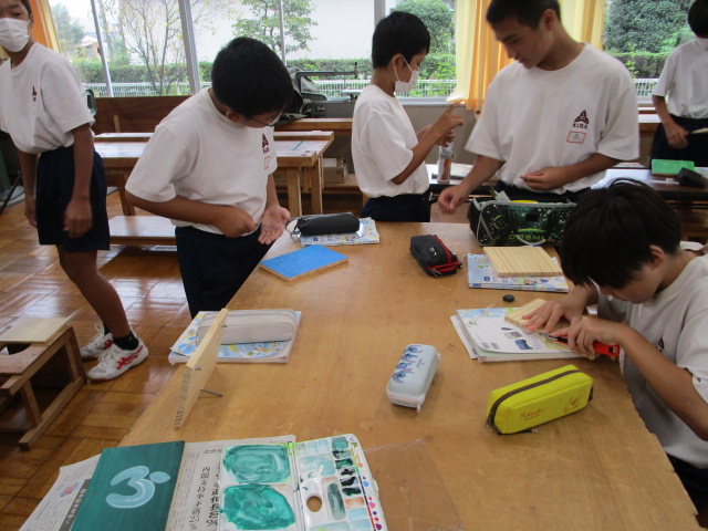 写真立て作り (1年 技術) 2025年10月1日 最終更新日時 : 2025年10月1日 kumagaya_edit 透明なアクリル板と木の板を使って写真立てを制作しています。好みのサイズ、好みの形、好みの色に加工して様々な作品を制作しています。