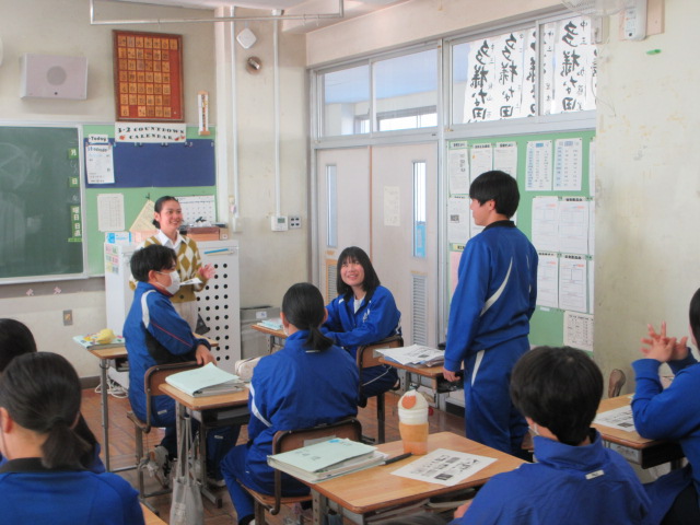 ALTの先生と、冬休みの出来事について会話をしています。
