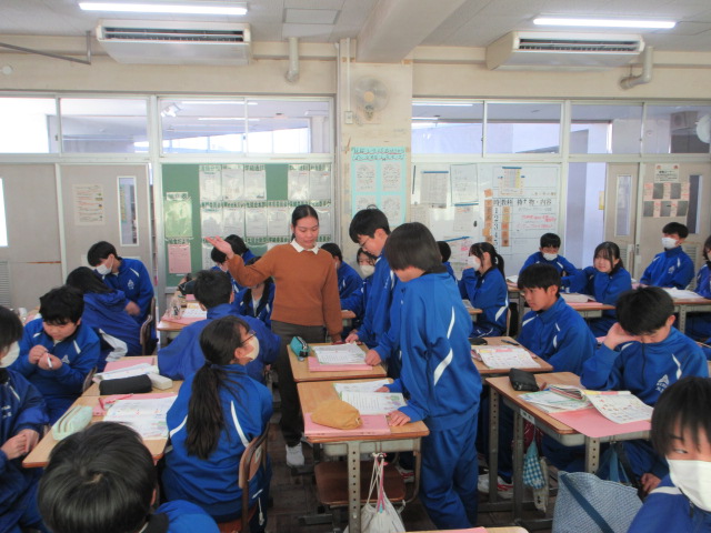 友達の紹介(1年) 2025年12月8日 最終更新日時 : 2025年12月8日 kumagaya_edit ALTの先生に、英語で友達を紹介しています。型は示されていますが、あてはまる英単語が意外と難しいです。