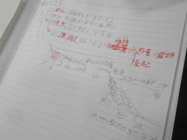 地層のでき方(1年) 2026年2月24日 最終更新日時 : 2026年2月24日 kumagaya_edit 隆起と沈降を繰り返しながら地層はできていきます。ノートの図が上手に書けている人が多いです。