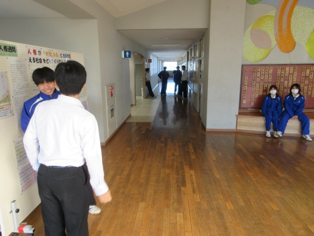 昼休みの多目的ホール。3年生が楽しそうに過ごしています。