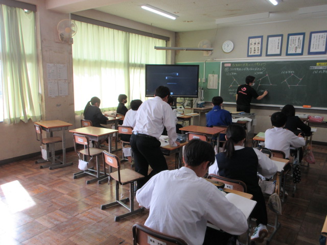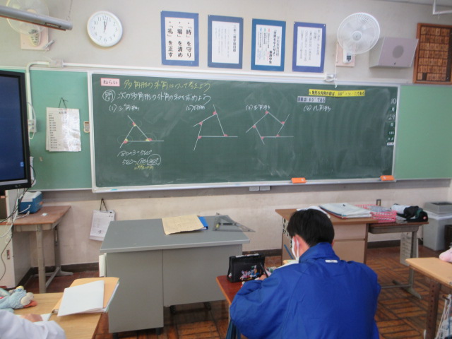 内角の和の式を使って、なぜ同じ角度になるのかを説明しています。