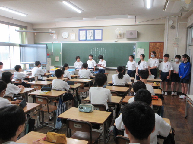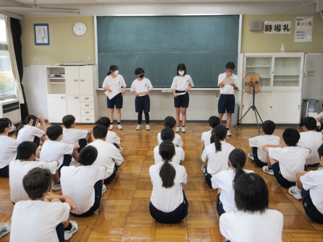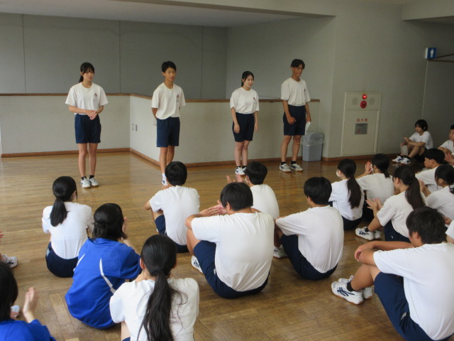 学年朝会 2025年9月11日 最終更新日時 : 2025年9月11日 kumagaya_edit 1年生はテストを振り返って、2・3年生は体育祭に向けてリーダーの決意発表を行っています。大きな声で自分の意見を発表しています。