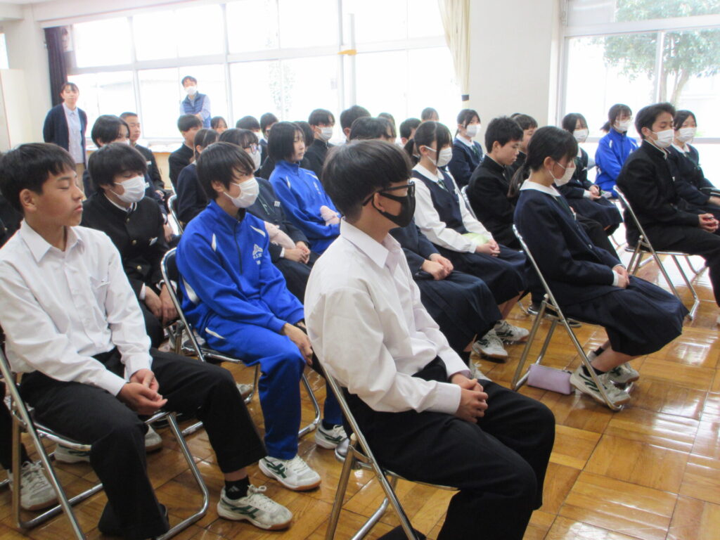 各学年が学年集会を行っています。学年として確認しておきたいことや、この1年のを見通した話をしています。