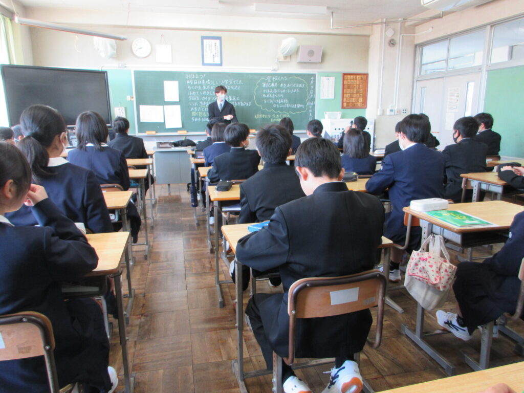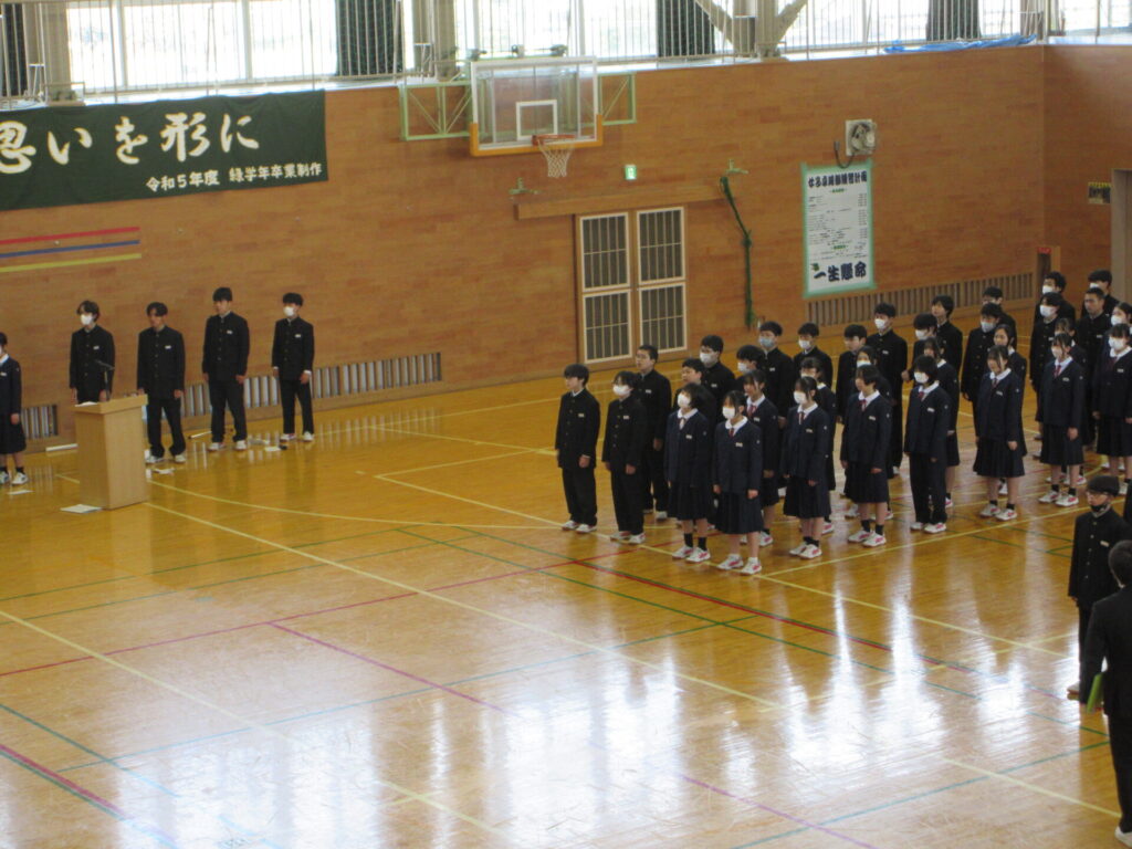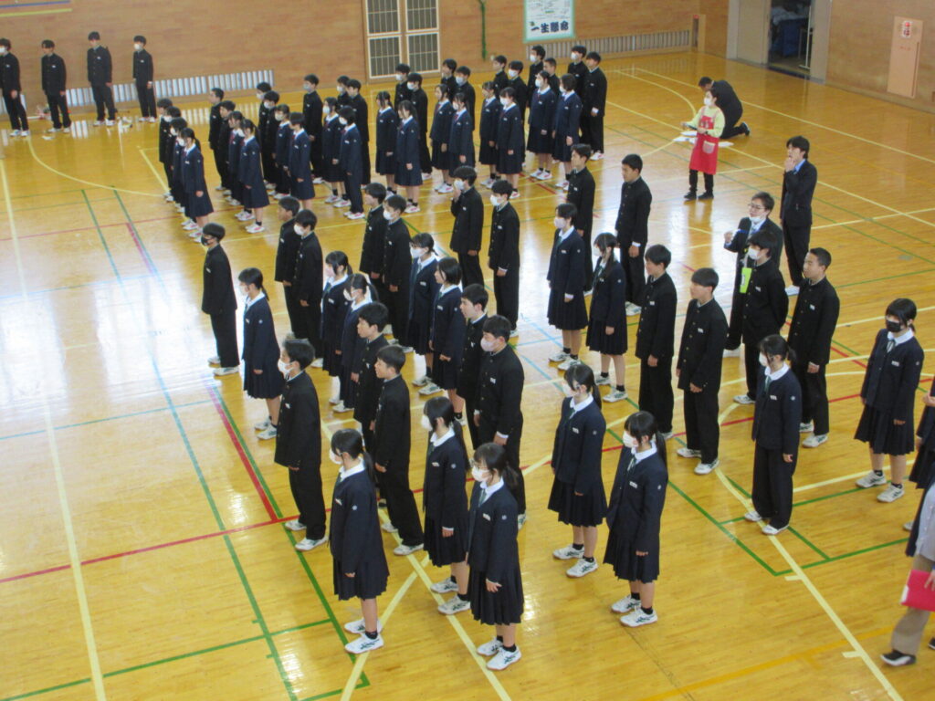 2・3年生は1年生を迎える準備として校歌披露の練習をしていました。1年生は、やや緊張気味です。