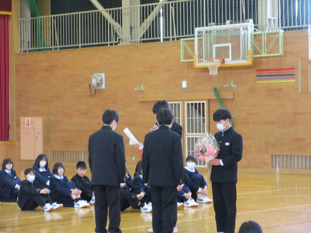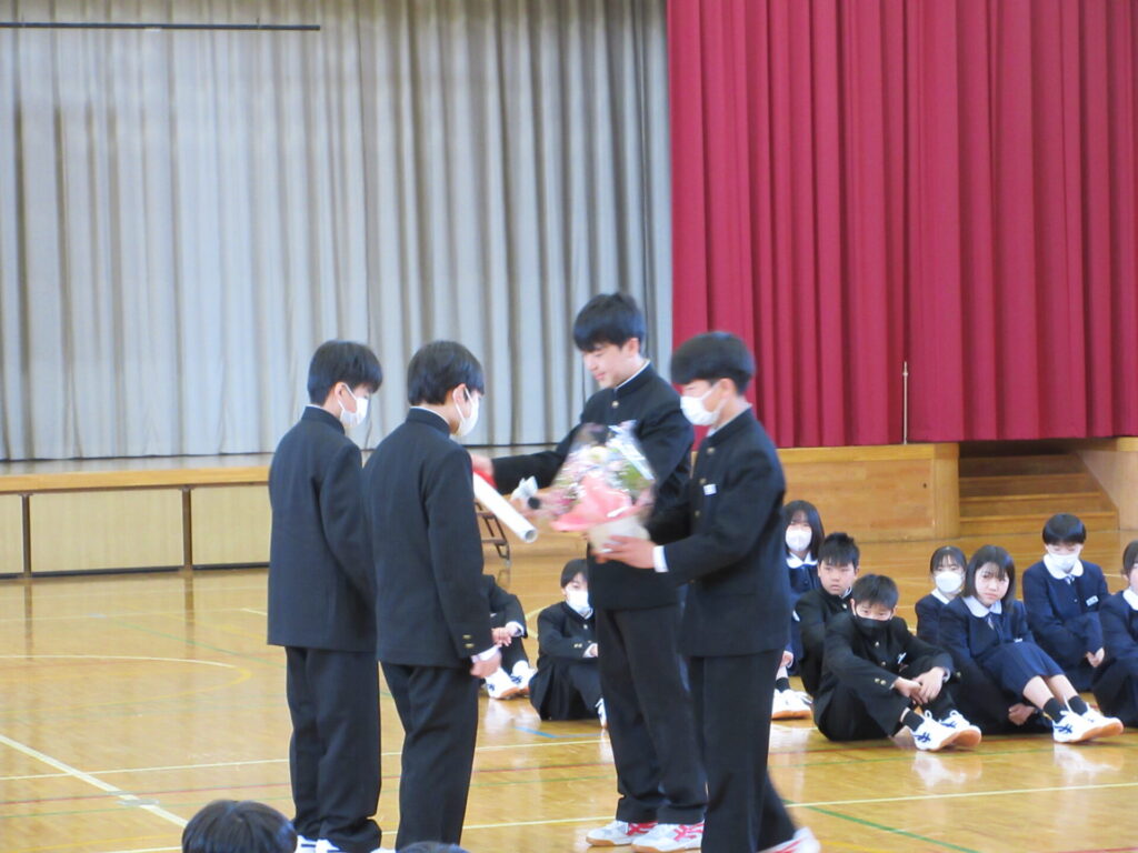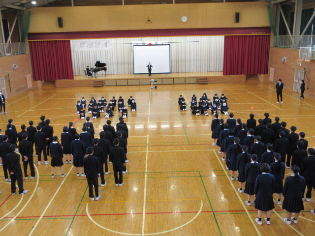 対面式③ 上級生からのプレゼント 2026年4月9日 最終更新日時 : 2026年4月9日 kumagaya_edit 校歌披露に先立って、教室掲示用の校歌の歌詞と鉢花が、生徒会本部役員から1年生に贈られました。どちらも大切にしてくださいね。