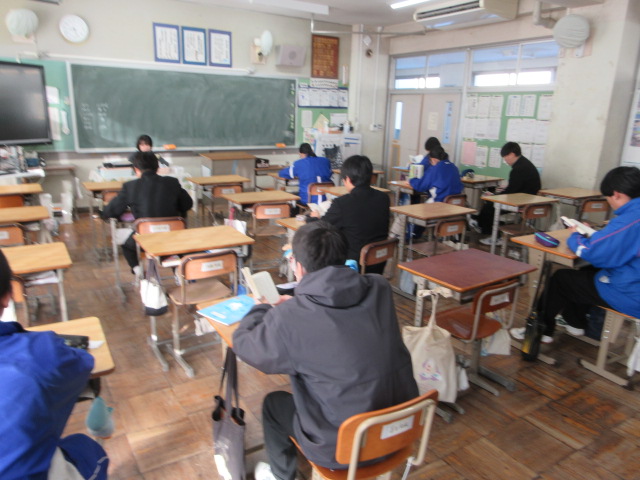 本日多くの生徒が私立高校の入試となっています。今日試験がない生徒のみの登校です。