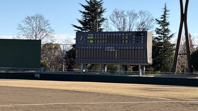 4-0で勝利。決勝進出です。電光掲示板が中東吉ー奈大。合同チームが増えました。