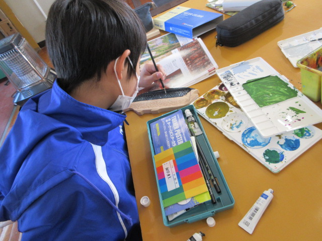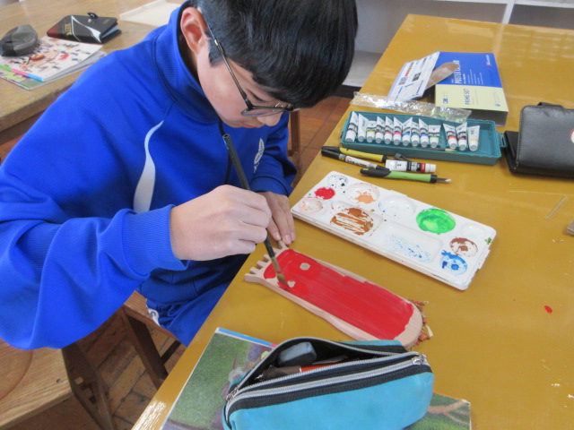 磨き上げたペンケースにいよいよ色を付け始めました。