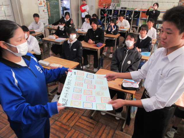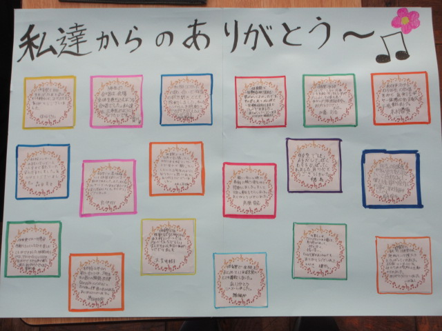 感謝のメッセージ(1年⇒3年) 2025年11月21日 最終更新日時 : 2025年11月21日 kumagaya_edit 体育祭や秋桜コンサートでリーダーシップを発揮してくれた3年生に、1年生が感謝のメッセージを作成し、その贈呈式が行われました。朝から心が温かくなりました。