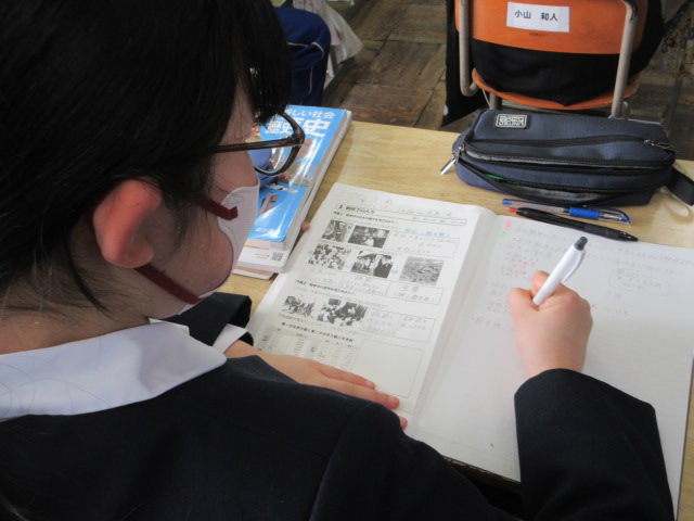 太平洋戦争中の様子について学んでいます。徐々に徴兵の対象が広がっていきます。