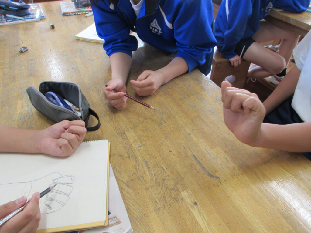 手のデッサン ~2年 美術~ 2026年4月21日 最終更新日時 : 2026年4月21日 kumagaya_edit 自分の手をデッサンしています。手を角度を変えて見たり仲間の意見を聞いたりしながら、影の付け方等に気をつけて取り組んでいるようです。