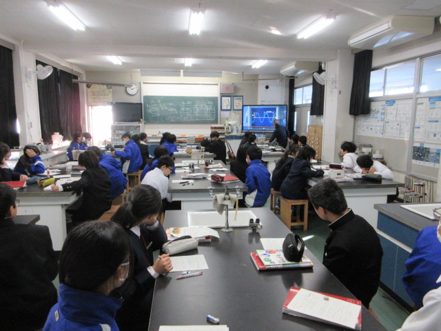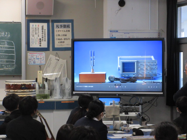 実験の結果も踏まえて、オシロスコープでの変化の様子を確認しています。