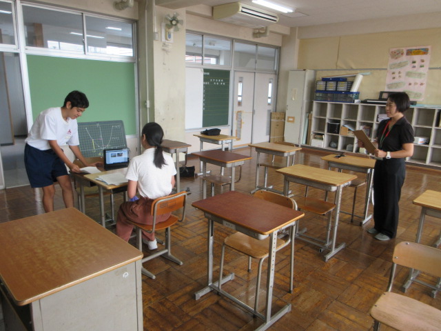 授業参観(2年) 2025年9月29日 最終更新日時 : 2025年9月29日 kumagaya_edit ALTの先生の活動の様子を参観に来ていただいています。生徒は完成した熊谷観光案内のプレゼンを発表しています。