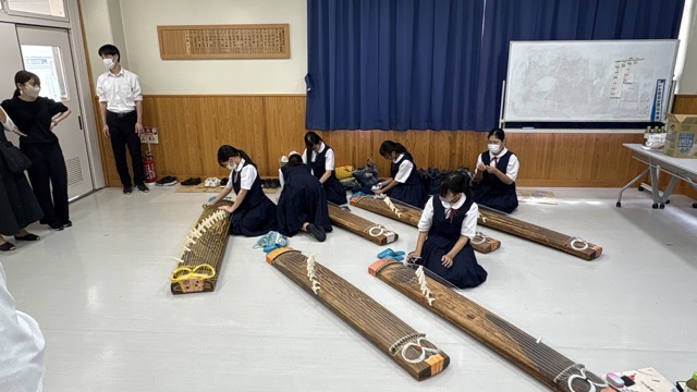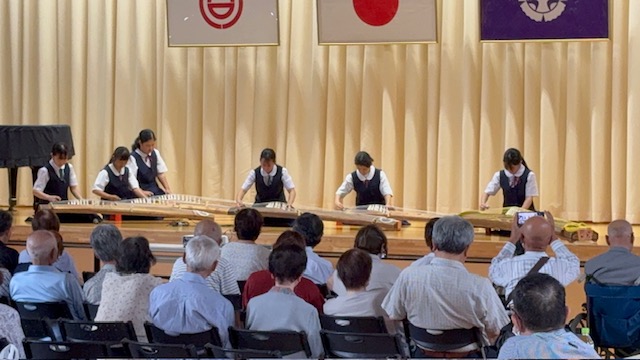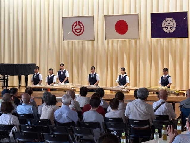 敬老会演奏 2025年9月28日 最終更新日時 : 2025年9月29日 kumagaya_edit 1・2年生による初のステージになりました。箏曲部の新人戦です。演奏に合わせて歌ったり、踊ったりされている方もいらっしゃいました。素晴らしい演奏を披露できました。