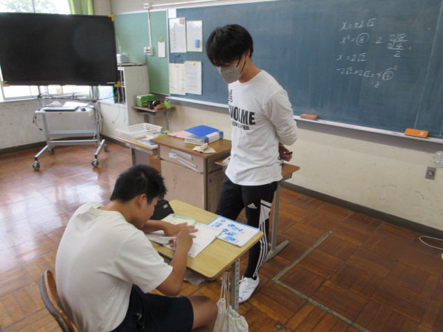 数学(ならの木) 2025年10月7日 最終更新日時 : 2025年10月7日 kumagaya_edit それぞれが数学の問題を解いています。二次方程式では√ の中を簡単にしなくてはいけません。授業には全く関係ありませんが、ミャクミャクの折り紙がとても上手にできています。