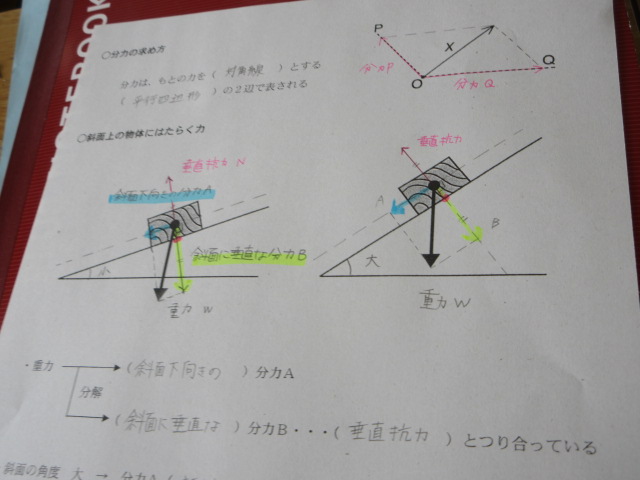力を分解してみると、なぜ急な斜面の方が早く物体が落ちるのかがわかります。