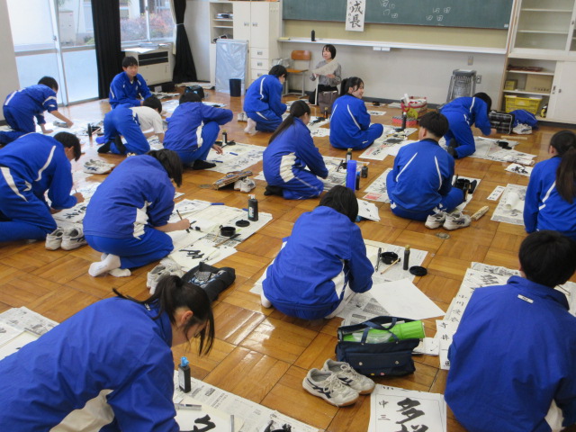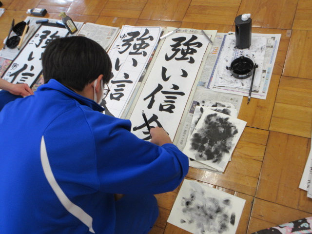 書初め(3年・ならの木・2年) 2025年12月11日 最終更新日時 : 2025年12月11日 kumagaya_edit 3年生、ならの木、2年生でも書初めが始まりました。2年生は「強い信念」、3年生は「多様な思考」漢字が多いだけでなく、字のバランスが難しいと感じます。