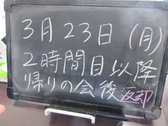最終貸出日 2026年3月19日 最終更新日時 : 2026年3月19日 kumagaya_edit 図書室の開室も残すところあと一日となりました。次回23日は、貸出は行わず返却の受付となります。一年間、たくさんのご利用ありがとうございました。