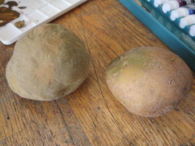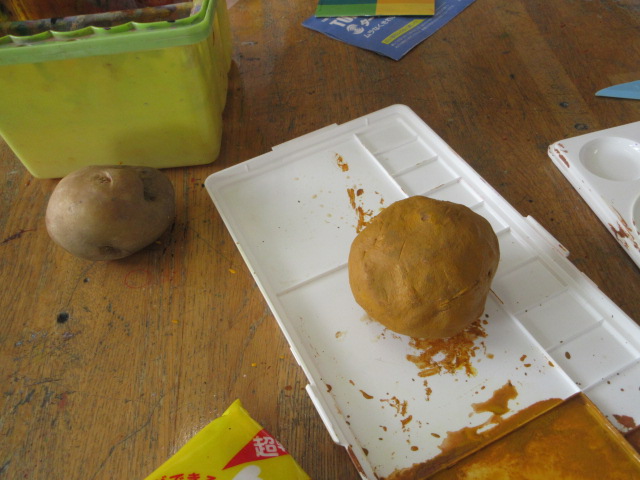 本日の収穫2?(1年 美術) 2025年9月30日 最終更新日時 : 2025年9月30日 kumagaya_edit ならの木学級に続いて、美術室でも収穫?(制作)が進んでいます。本物のじゃがいもを前に、どうしたら色や形を似せられるか、細部までよく観察して作り込んでいます。本物と並べた写真で比べてみてください。