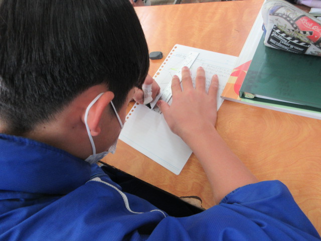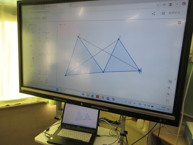 条件替え(2年) 2026年1月30日 最終更新日時 : 2026年1月30日 kumagaya_edit 元の形を正三角形から正方形に変更しても同じ証明ができるかを考えています。条件を替えて考えることは、数学科ではとても大切にしています。